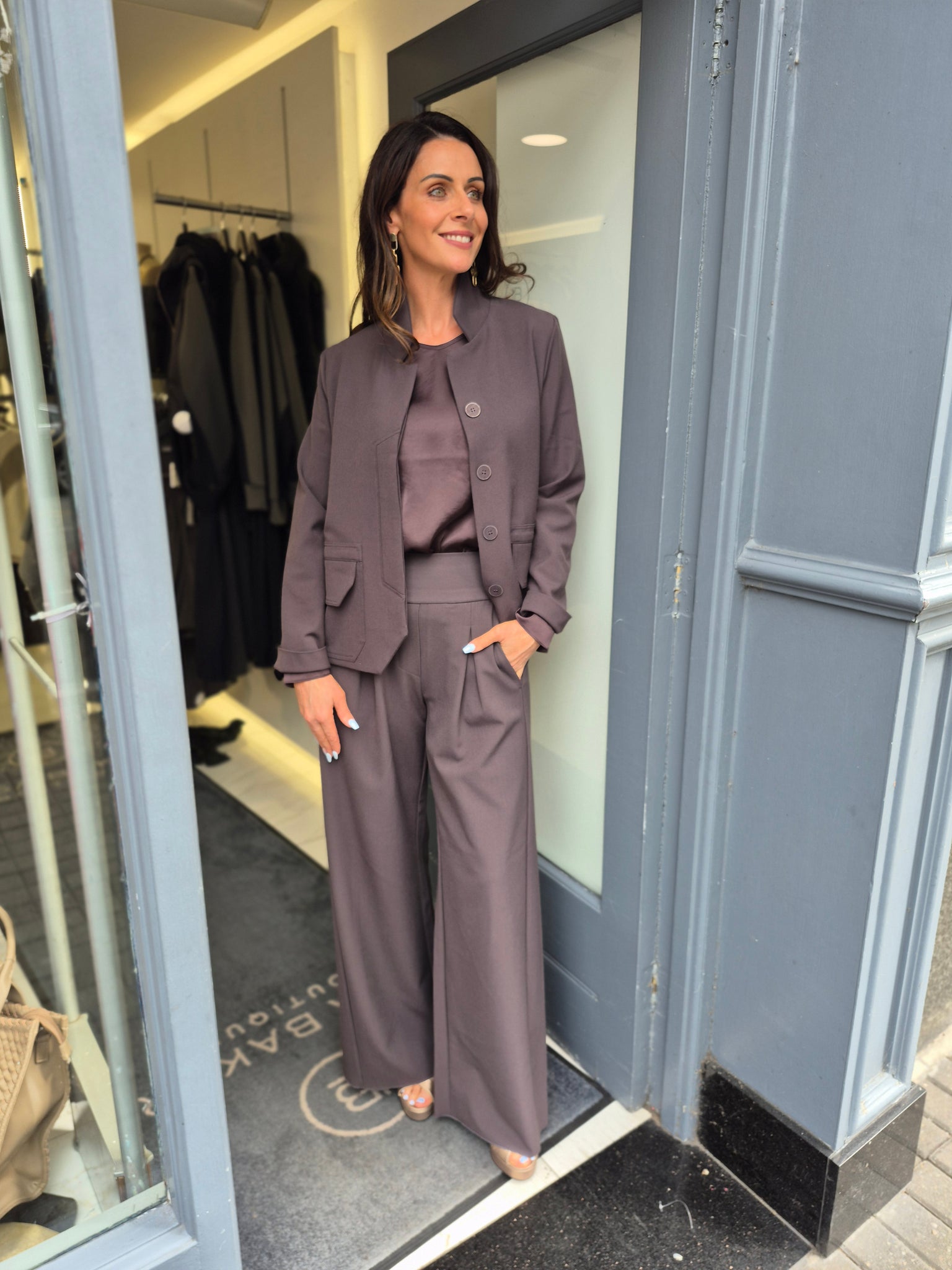 A luxurious look from this brand with is stunning mauve collection. These are wide leg trousers with a high waist and elasticated waistband in mauve