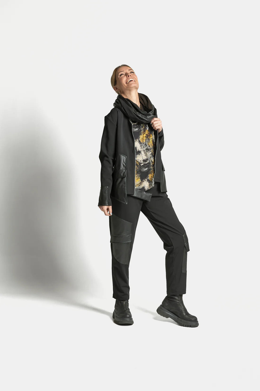 slight vneck style asymmetric hem long sleeve top with zip detail in a multicolour print