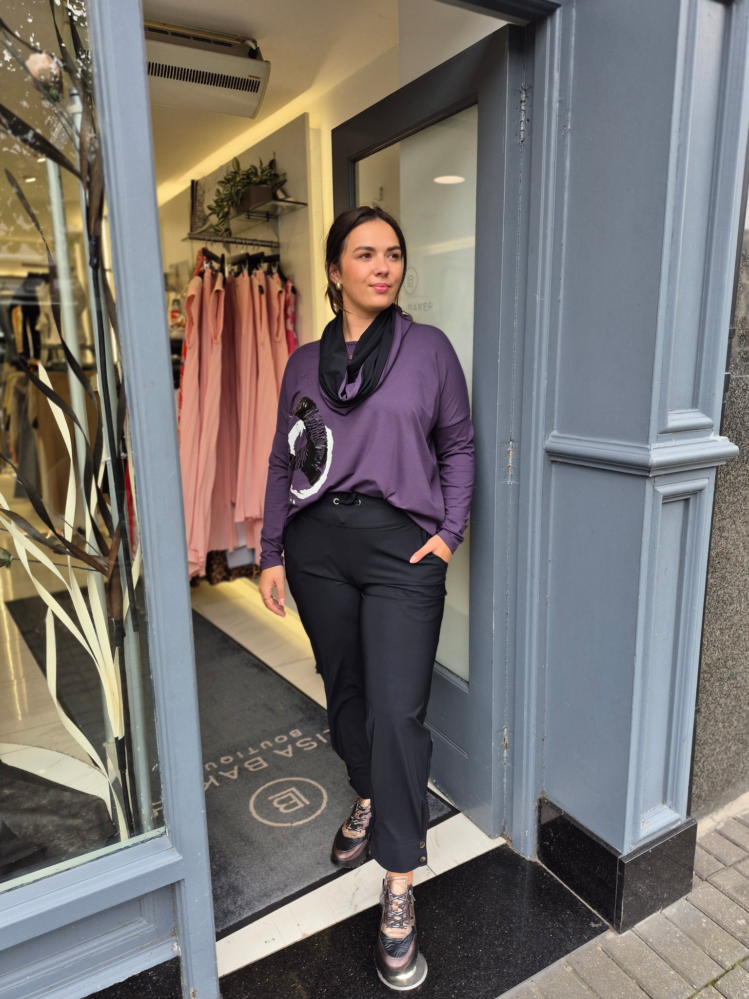 TOTALLY TAPERED; The NAYA tapered leg trousers with a relaxed drawstring waistband is kept up-to-date with the addition of self coloured studs added to the cuffed hems. A great option for every day wear. #nayaclothing #buynayaonline #irishdesign